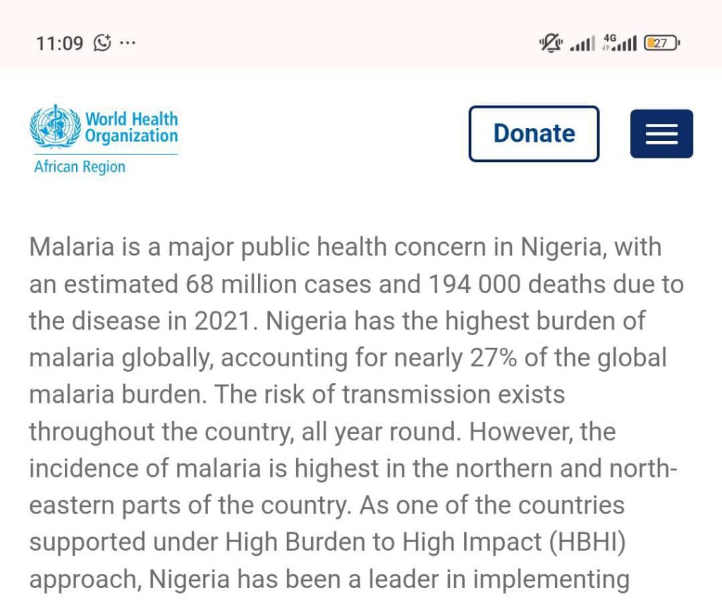 You Don’t Have To Believe Me, But Here Is What WORLD HEALTH ORGANIZATION – Has To Say About Malaria And Typhoid In Nigeria
