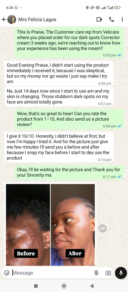 “My friends used to tease me about the spots on my face, calling me ‘map of Nigeria.’ It was painful. I tried so many creams but none gave results until this Dark Spot Corrector Cream.