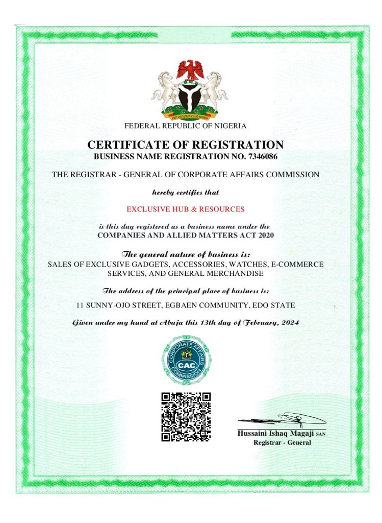WE’RE A REGISTERED GROUP OF COMPANY WITH CORPORATE AFFAIRS COMMISSION, SEE OUR CERTIFICATE BELOW. SO YOU’RE IN SAFE HANDS.